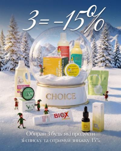 З 1 по 7 грудня 2025 року обери ТРИ будь-які продукти із переліку — отримай -15% знижки.